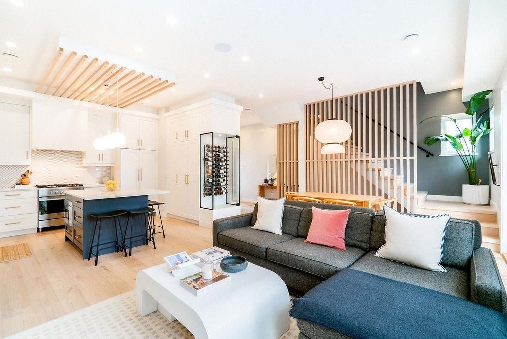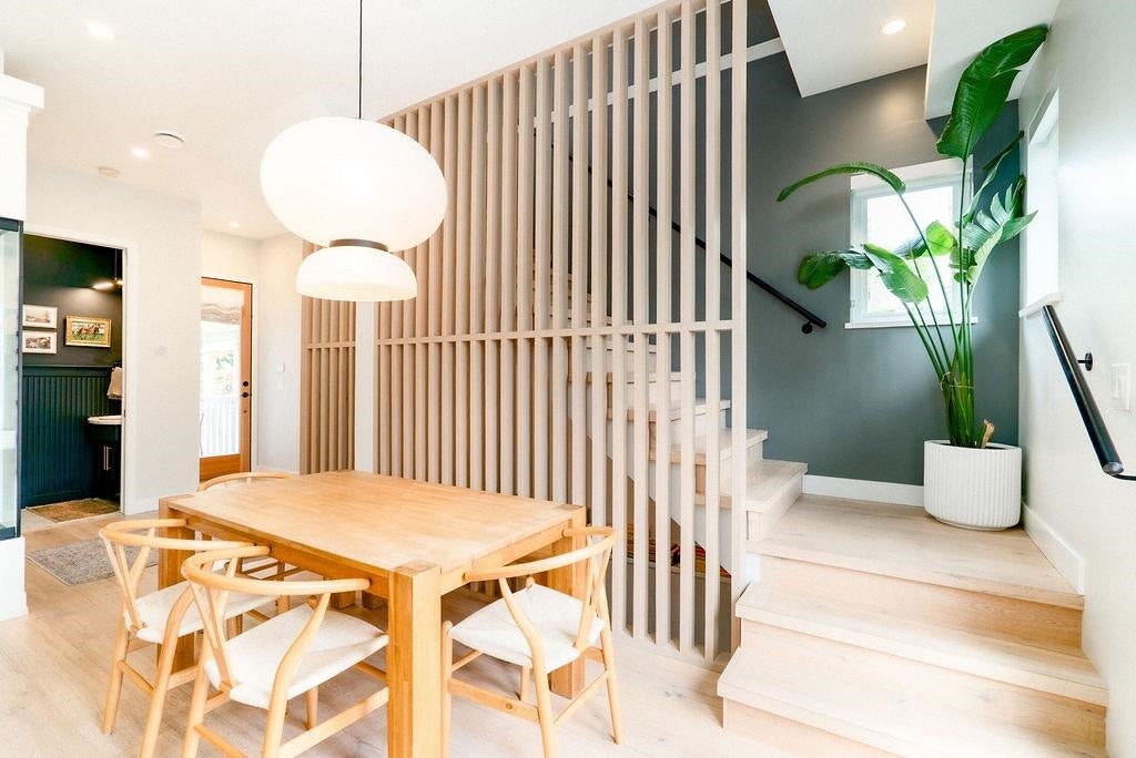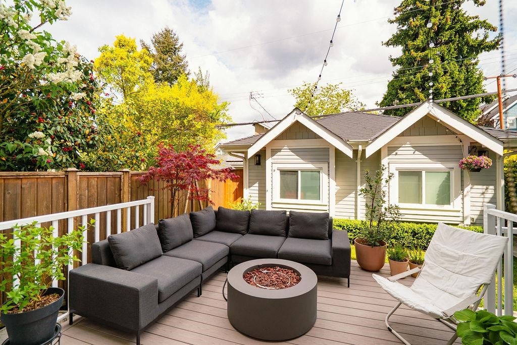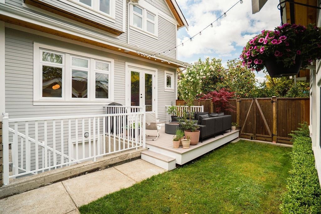 Nestled in one of the most vibrant & sought-after neighbourhoods, steps to Commercial Drive, this stunning 3 level duplex offers ~1,600sf of thoughtfully designed living space. It’s as functional as it is beautiful w/ high end finishings & custom details throughout. Walk in the door to a foyer that features built-in cupboards to hide your coats & shoes. An open main floor, complete w/ gourmet kitchen, is the perfect layout for entertaining. 3 spacious bedrooms & a laundry room are all perched upstairs. Downstairs, find a bonus area for a home office or rec room & a large crawl space for addt'l storage needs. On a nice day, indoor/outdoor living is made easy w/ french doors that lead to private deck. Smell the lilac from the fenced backyard where a single car garage sits at the edge.
